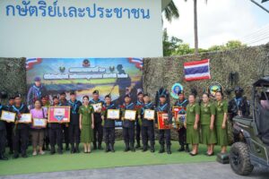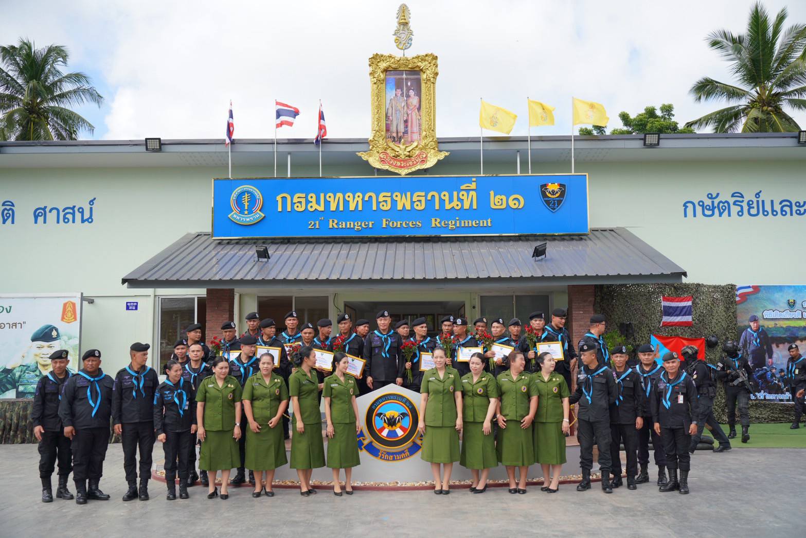 พันเอก อินทราวุธ ทองคำ ผู้บังคับการกรมทหารพรานที่ 21/ผู้บังคับหน่วยเฉพาะกิจกรมทหารพรานที่ 21 พร้อมด้วยคณะนายทหาร, นายสิบ และสมาคมแม่บ้านทหารบก สาขา กรมทหารพรานที่ 21 จัดพิธีเทิดเกียรติและอำลาชีวิตราชการทหาร ประจำปี 2568 ให้กับกำลังพล อาสาสมัครทหารพราน ผู้เกษียณอายุราชการ จำนวน 16 นาย เพื่อให้ผู้ที่อำลาชีวิตราชการ มีความรู้สึกภาคภูมิใจ มีเกียรติ มีศักดิ์ศรี ที่เข้ามาเป็นส่วนหนึ่งของกองทัพบก ที่ได้เสียสละความสุขส่วนตัวทุ่มเทแรงกายแรงใจในการรับใช้ประเทศชาติตลอดระยะเวลาที่ผ่านมา ด้วยความรู้ความสามารถของทุกท่าน ที่ยังเป็นประโยชน์ต่อกองทัพบกและประเทศชาติ เกียรติประวัติ พร้อมทั้งคุณงามความดีที่ท่านได้พากเพียรสร้างสมไว้แก่ กรมทหารพรานที่ 21 จะยังคงจารึกอยู่ในความทรงจำตลอดไป