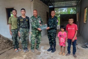 พ.อ.ธนาธิป เรียงอิศราง รอง ผบ.มทบ.210 ลงพื้นที่ตรวจเยี่ยมให้กำลังใจชุดช่าง มทบ.210 ที่เข้าร่วมสร้างบ้านให้กับครอบครัวเด็กในโครงการพัฒนาเด็ก ซี.ซี.เอฟ. คือ...